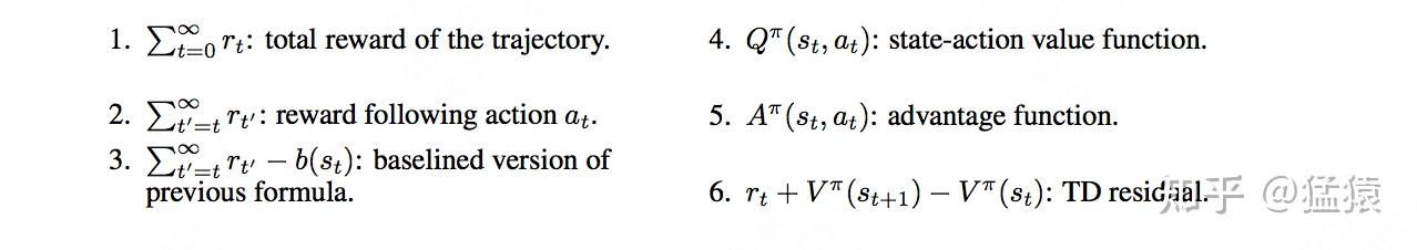 使用一个ψt来替换R(τ),策略的梯度变成: