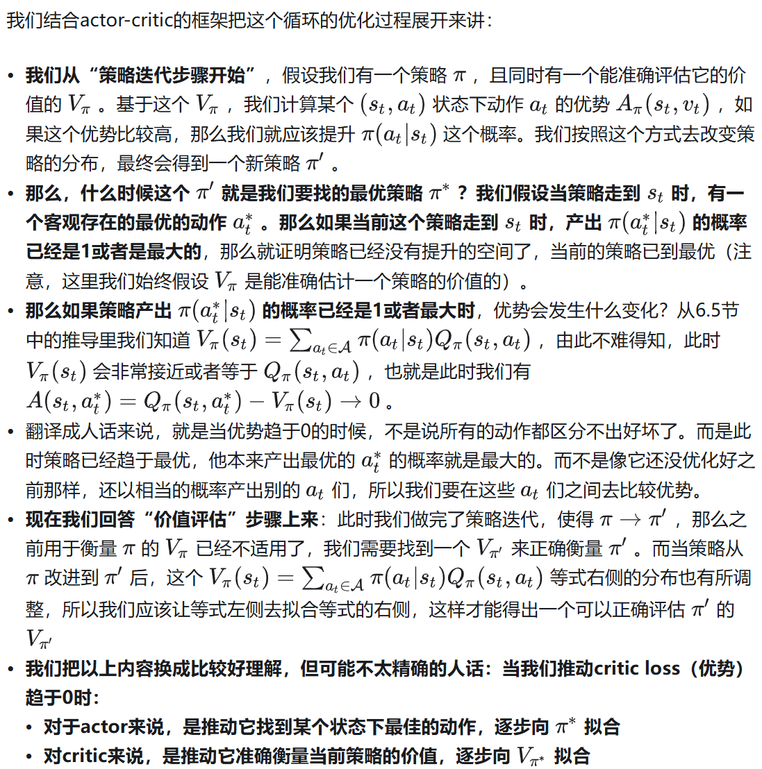 整个优化过程由以上两点交替进行,最终收敛到最优策略π*和能准确评估它的价值函数Vπ*。