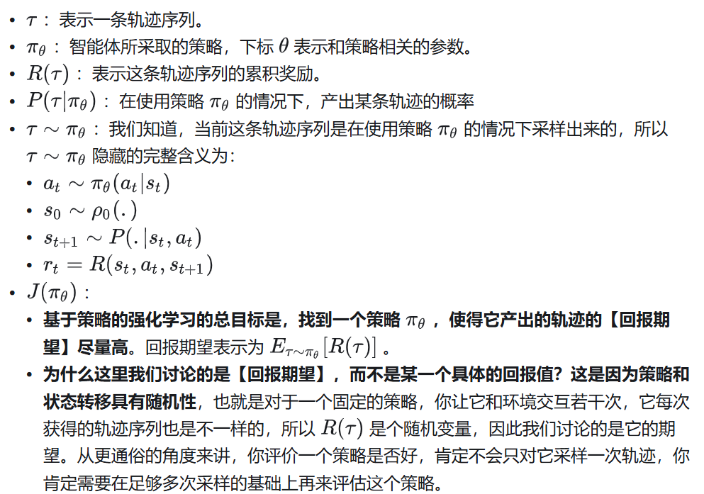 在基于策略的强化学习中,我们期望最大化以下优化目标:
