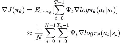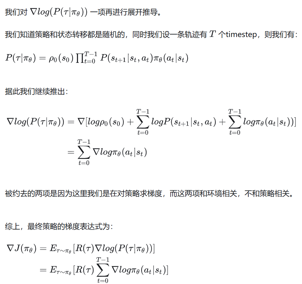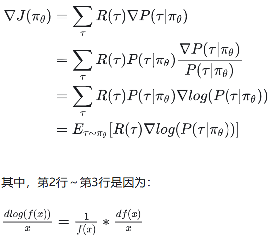 通过上面的推导,我们知道在强化学习中,策略的梯度可以表示为: