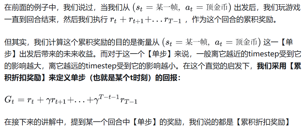 T步累积奖励等于一条运动轨迹/一个回合/一个rollout后的单步奖励的累加