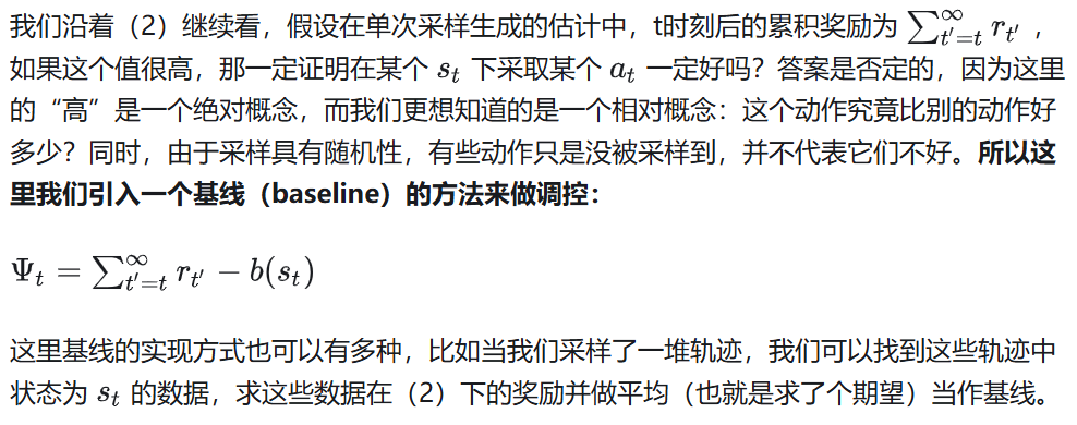 【问题】:R(τ)是整条轨道的奖励,而πθ(at|st)却是针对单步的。用整体轨迹的回报评估单步的价值,然后决定要提升/降低对应at的概率,可能不太合理:
