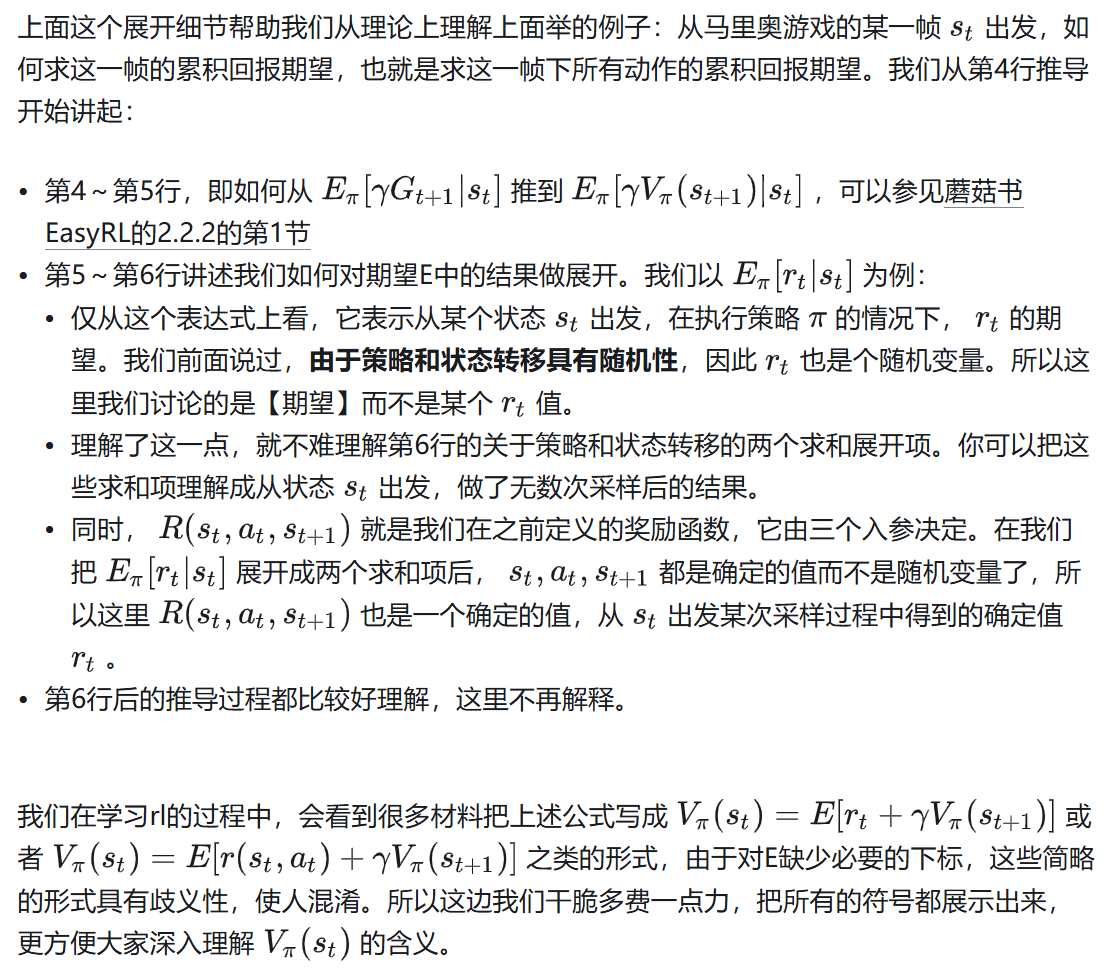 上面是状态价值函数最原子的定义,我们把这个定义展开,以便更好理解 是如何计算的:(不全,但是明白就行)