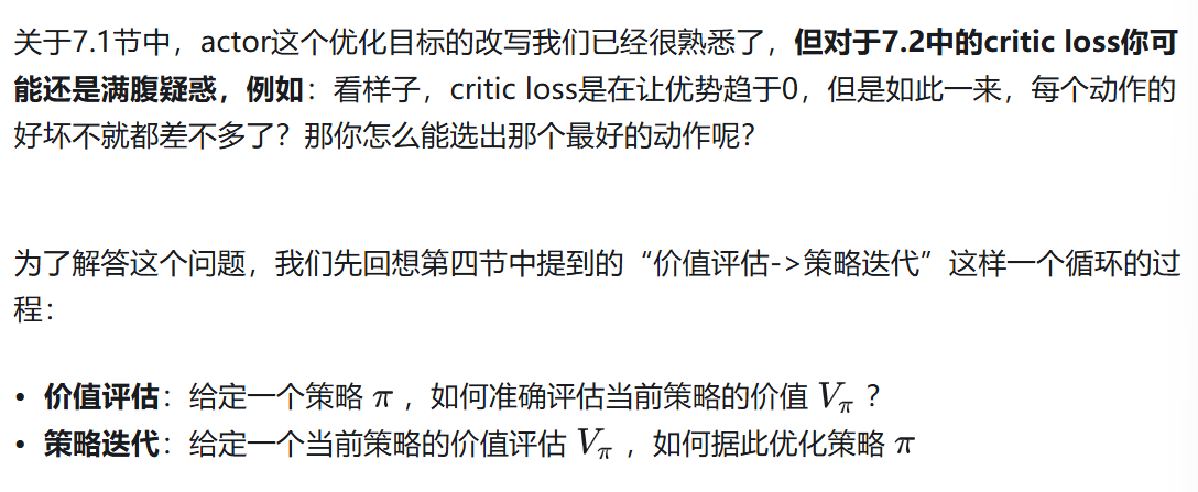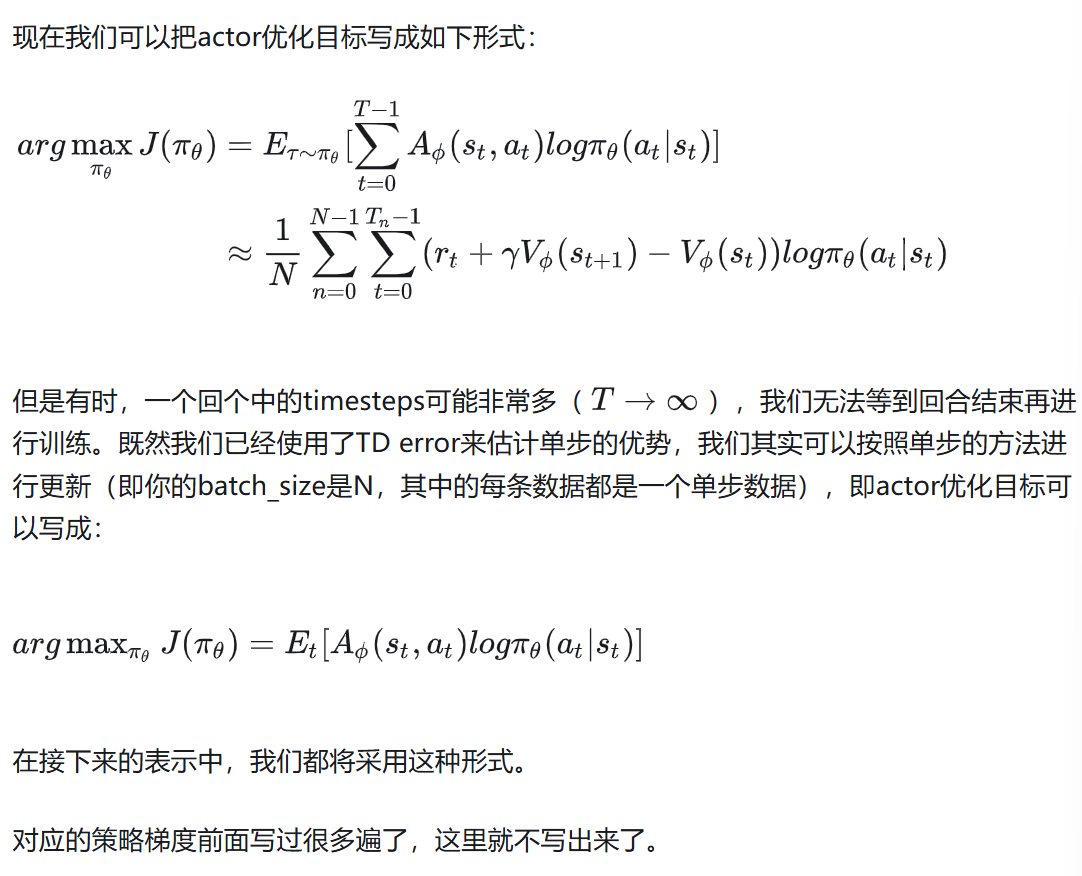 同时有价值实体Vπ和策略实体π,然后按上面的过程进行迭代,这种方法被叫做actor-critic,其中actor表示策略,critic表示价值。