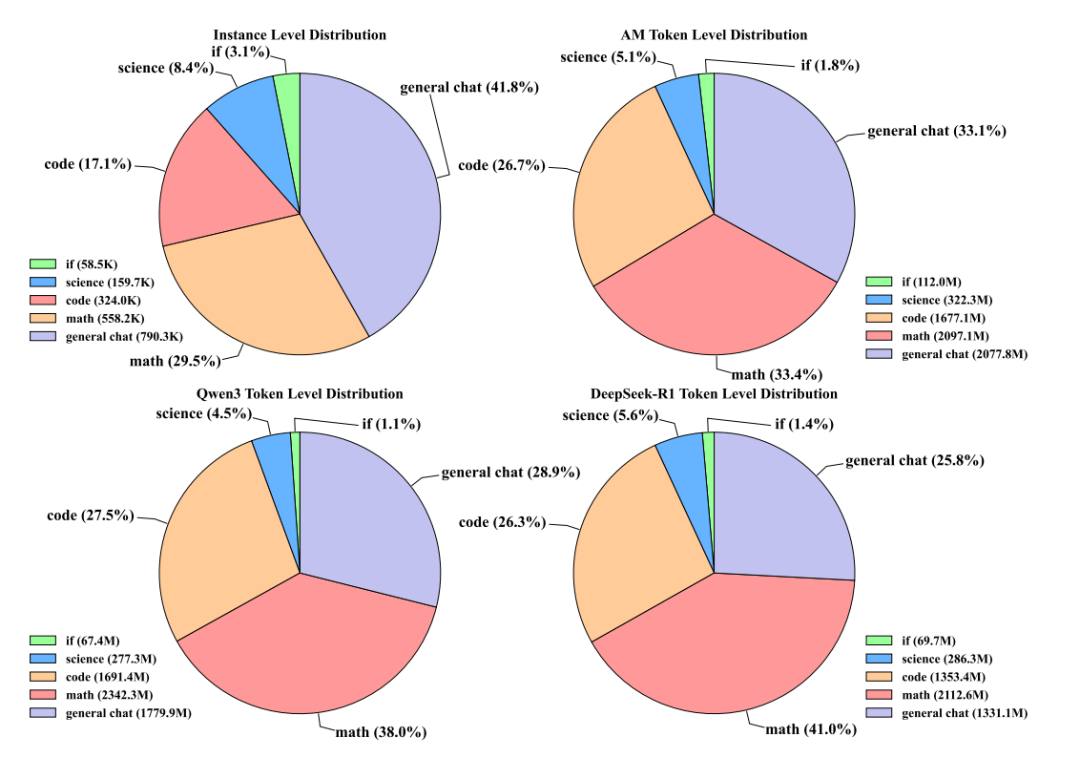 这意味着,AM的响应跨度广——它既能生成简洁的1024 token以内回复,也能输出超过 10240 token 的复杂推理链,这种“长短结合”的分布为模型的自适应能力提供了数据支撑。