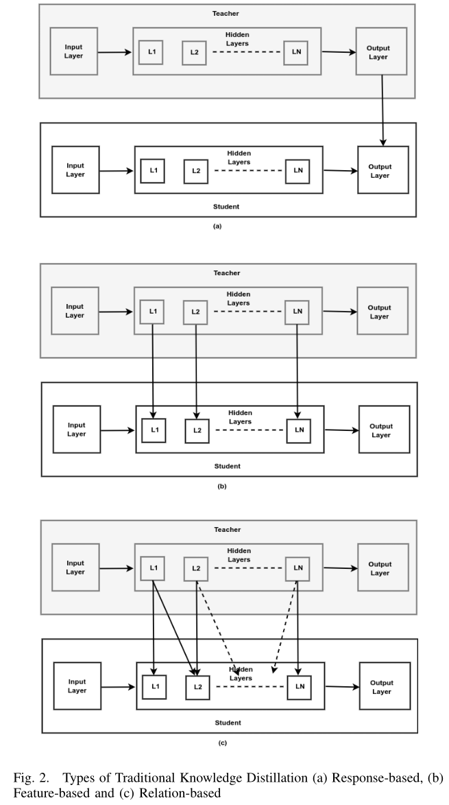基于响应的知识蒸馏涉及将知识从教师模型的最终输出层转移到学生模型,旨在模仿教师的最终预测(采用基于教师和学生 logits 之间差异的损失函数)